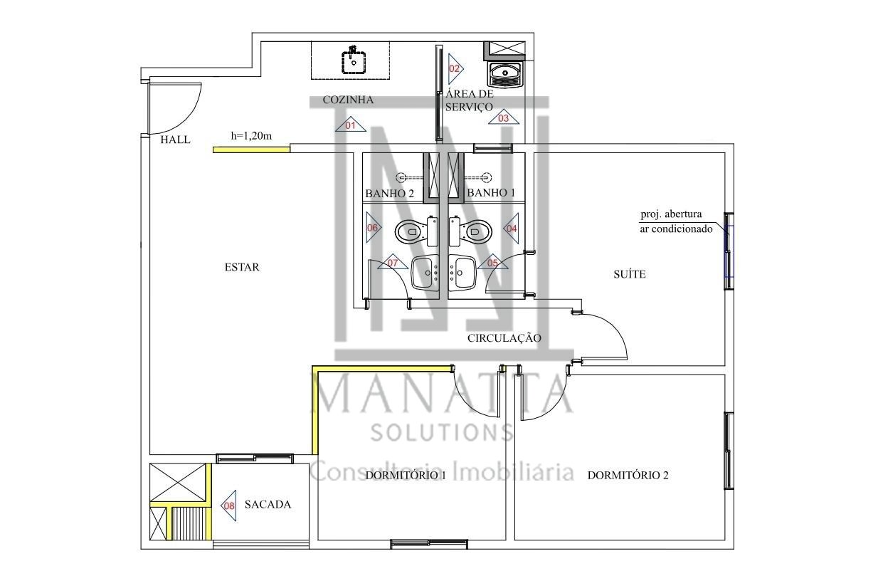 - Sala para 2 ambientes, com sacada e churrasqueira