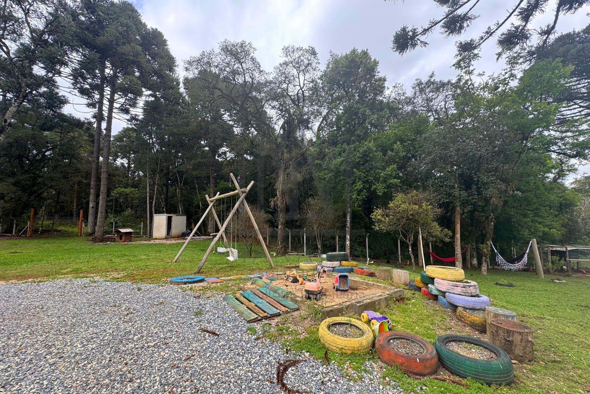 O terreno conta com playground, espaço para fogueira, oficina com cobertura para dois veículos e um córrego na divisa, que traz charme e tranquilidade ao local.