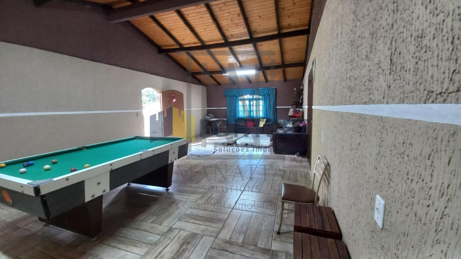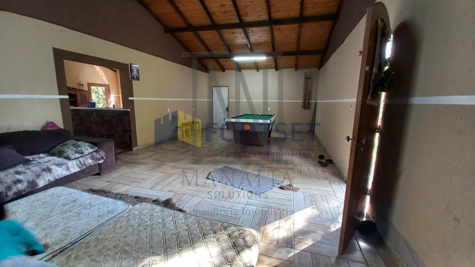Construção em alvenaria com ampla cozinha e ante sala com mesa de bilhar perfeita para encontros e diversão