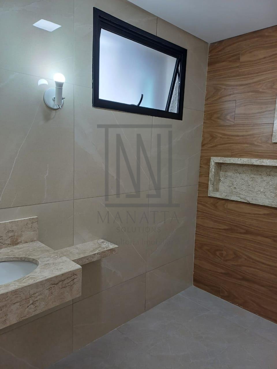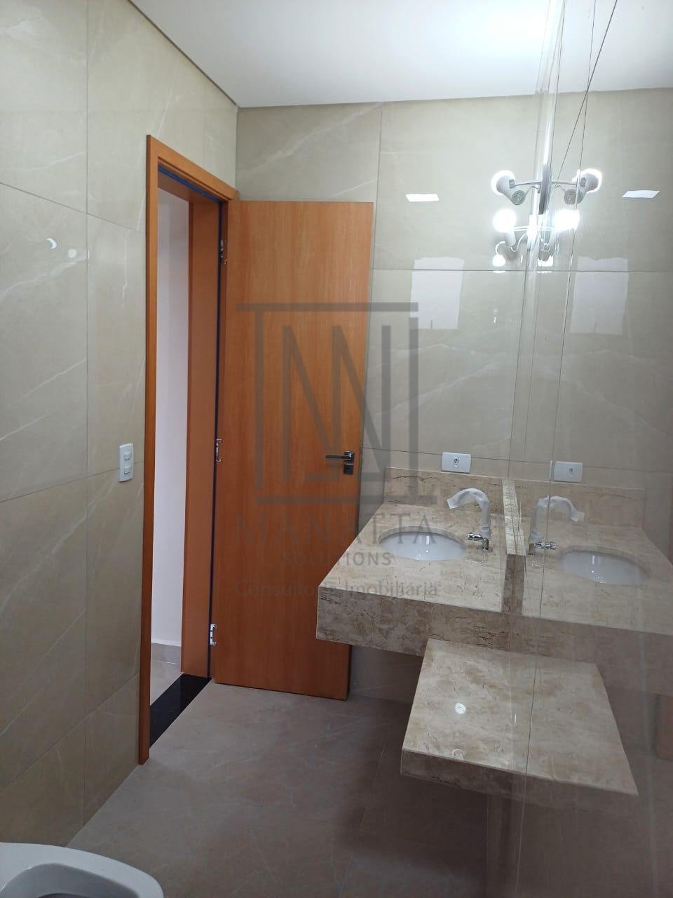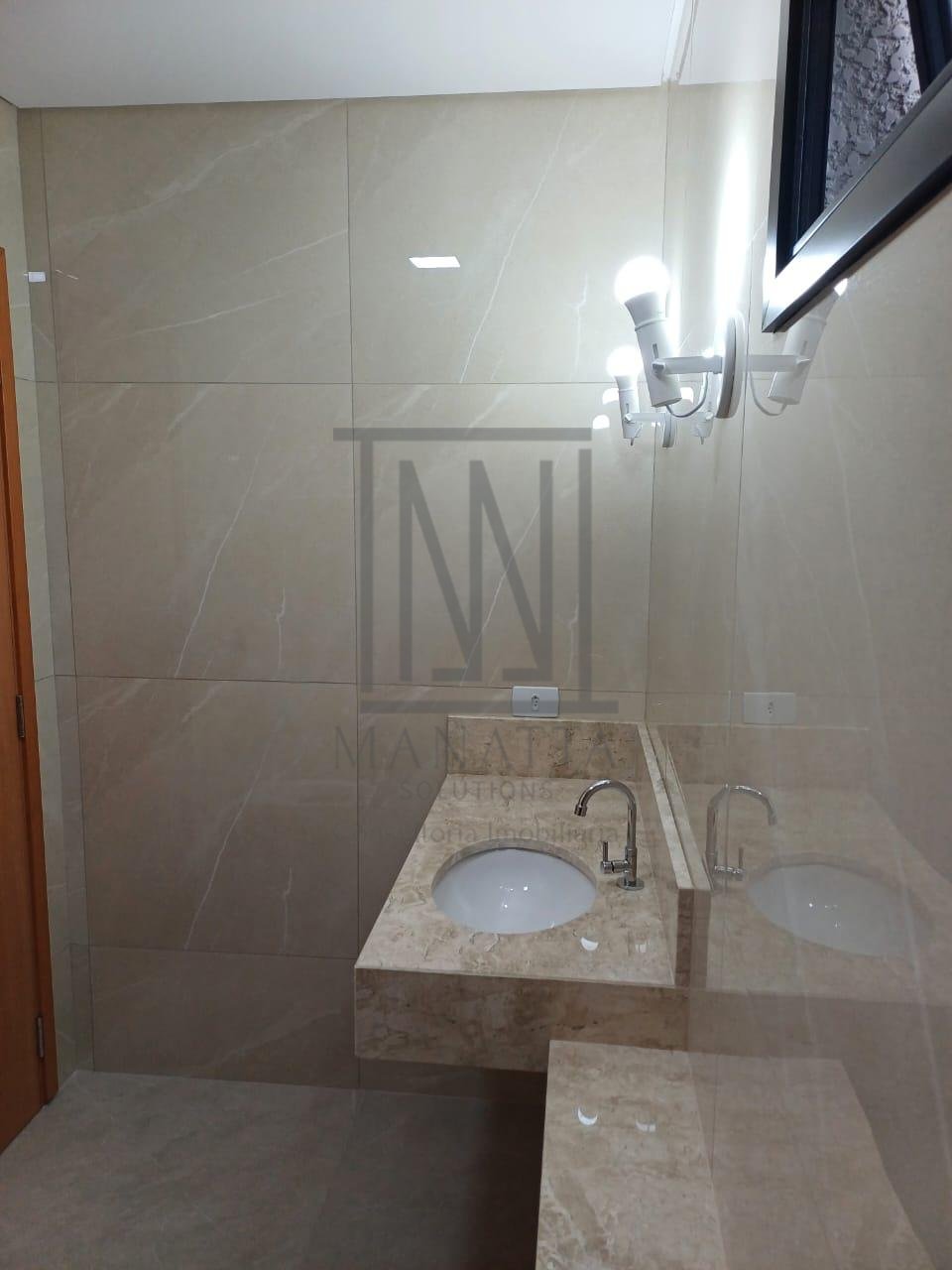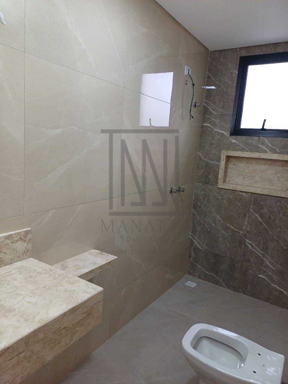 - 3 banheiros completos com acabamentos de alto padrão, box em vidro verde e bancadas em granito