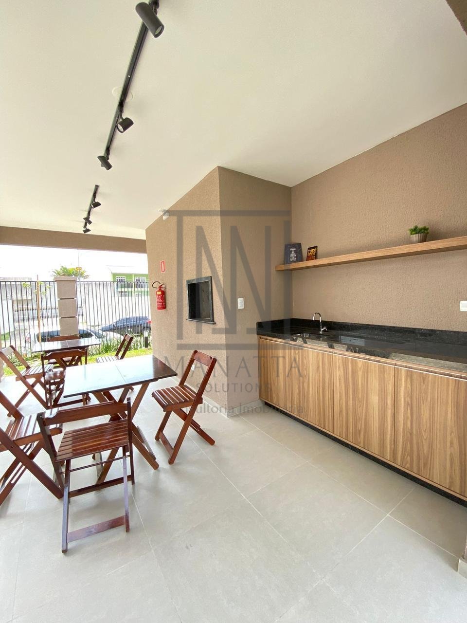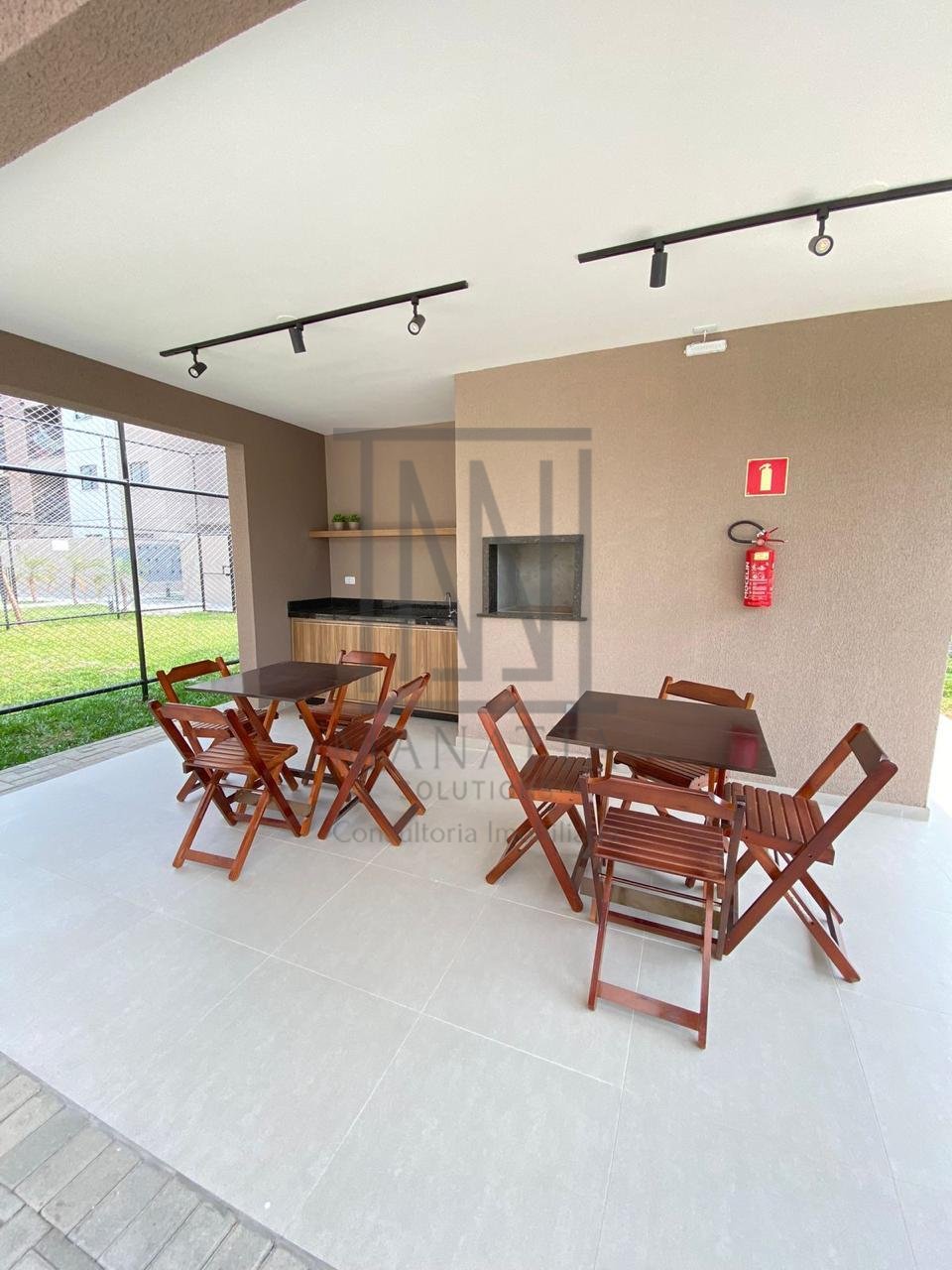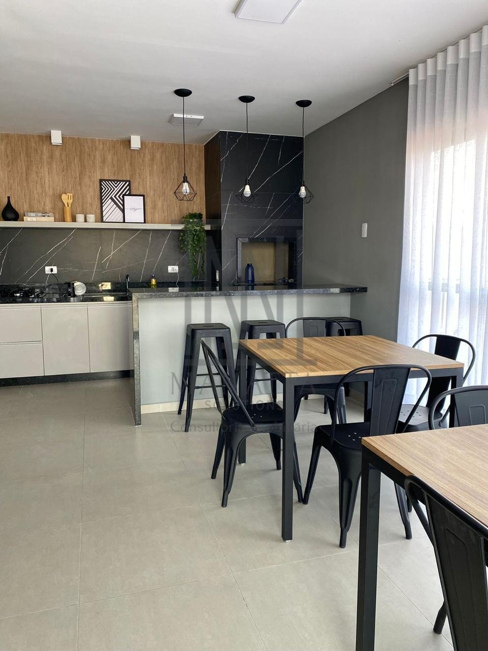 Salão de festas com churrasqueira
